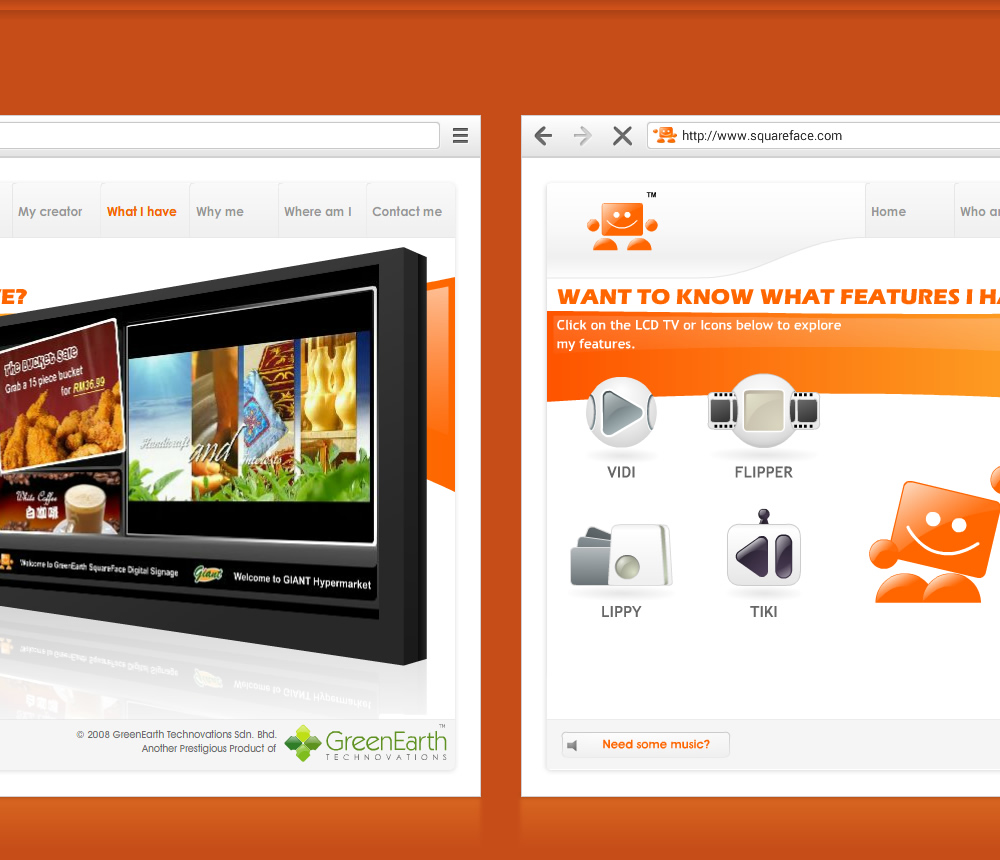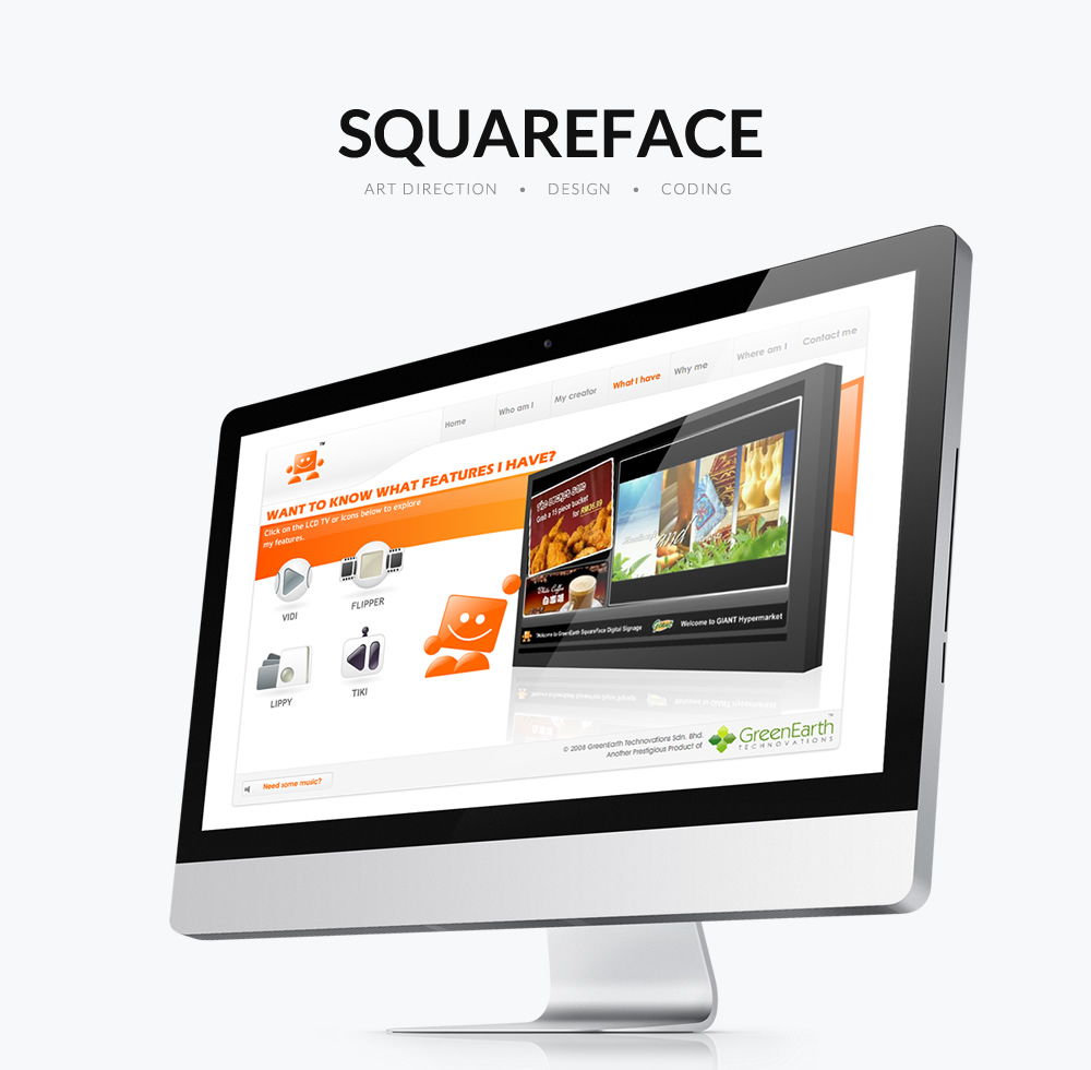 Squareface Digital Signage is one of the project under Greenearth Technovations, I was tasked to design a complete full Flash Website (when it was still a thing) with distributable Auto-run CD for offline marketing usage.